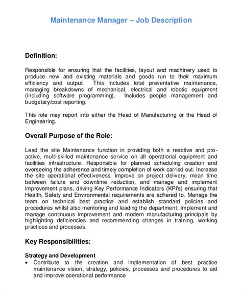 Read Online maintenance supervisor job description sample Epub online is a convenient and frugal way to read maintenance supervisor job description sample you love right from the comfort of your own home. Yes, there sites where you can get Epub "for free" but the ones listed below are clean from viruses and completely legal to use.